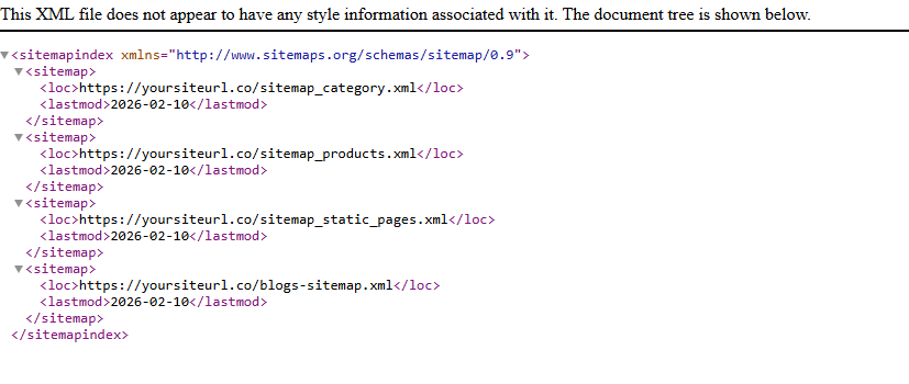 domain.com/sitemap.xmlURL to verify the updated structured sitemap index.